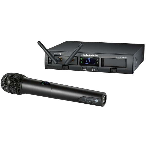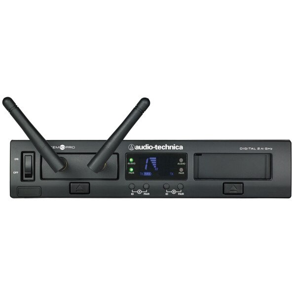 The all new System 10 PRO rack mount digital wireless system from Audio-Technica provides the same interference-free operation in the 2.4 GHz range (outside TV bands) as the original System 10 wireless system, but with even more features and versatility. The durable half rack chassis is equipped to house two receiver units that can be operated locally or released from the chassis and mounted remotely (up to 328 feet away) via Ethernet cable. Up to five chassis (10 receiver units) can be linked using the RJ12 cable included with each system, creating a stable, multichannel system with the simultaneous use of up to 10 channels.