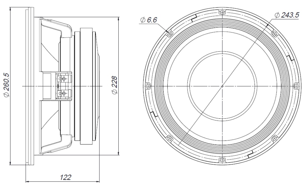 The Beyma 10MI100 is a 10″ mid-frequency transducer built for high-quality sound reinforcement systems, especially in live and PA environments. With its high efficiency and linear response, it excels at delivering clean, detailed mids from vocal to upper-range content.