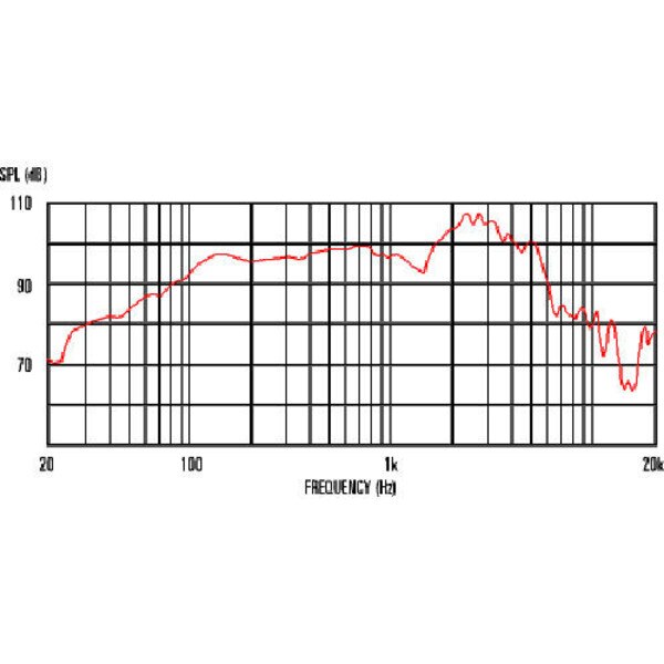Overall Specifications: • Nominal diameter: 12" (305 mm) • Power rating: 75 watts • Nominal impedance: 8 ohm • Sensitivity: 97 dB • Chassis type: Pressed steel • VCdia: 1.75" (44.5 mm) • Voice coil material: Round copper • Magnet type: Ceramic • Frequency range: 80-5,000 Hz • Fs: 85 Hz • DC resistance, Re: 6.77 ohm.