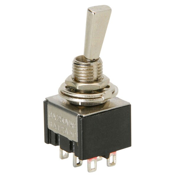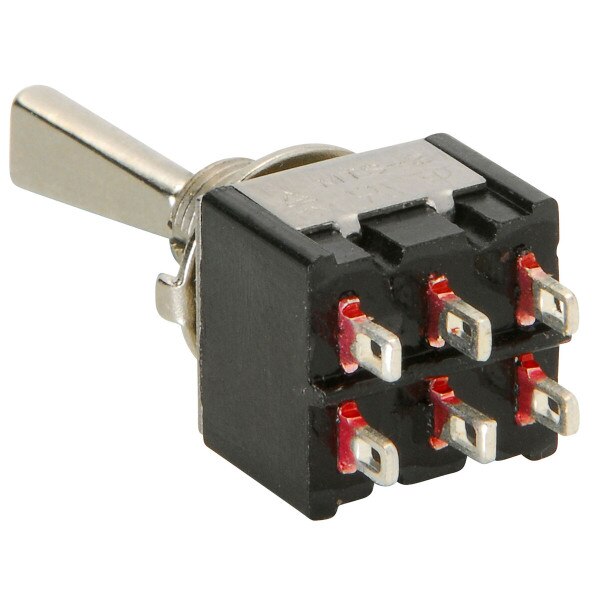 Specifications: • Current rating: 6A @ 125 VAC, 3A @ 250 VAC • Contacts: 6 • Shaft diameter: 6.4 mm (17/64") • Approvals: TUV, UL.