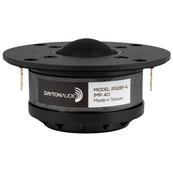 Dayton Audio's Reference Series tweeters are designed to complement the RS woofers. The RS28F-4 incorporates an optimized silk diaphragm that combines low mass, superb damping, and a carefully calculated dome profile. A tuned rear chamber, supported by a rugged diaphragm assembly, enables crossover possibilities in ranges as low as 1,000~1,100 Hz (with the appropriate filter). This unique 1-1/8" silk dome and a state-of-the-art Ferrofluid cooled motor system employs copper shorting rings to ensure that high frequency content is reproduced as transparently as possible, assuring studio-quality performance. RS28F-4 tweeters not only match the look and features of the RS woofers but also the clean, detailed, and uncolored sound that characterizes the entire series.