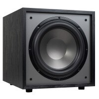 The amplifier features high and low level inputs and high level outputs, a phase switch, independent volume control, an auto on/off switch (activated by an input signal) and a variable 12 dB electronic low pass filter. This compact sub is finished in an unobtrusive black vinyl that will complement any décor.