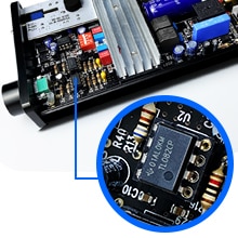 Incorporates a front circuit with negative feedback volume control, inspired by the dual op-amp design of classic international amplifiers. It delivers wide dynamic range, high output volume, and low distortion.