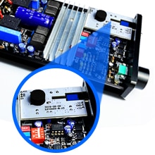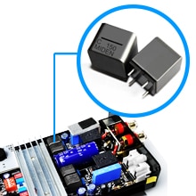 Using digital amplifier audio inductors, the desktop audio amplifier offers low distortion, high amplification, wide dynamic range, and low input impedance.