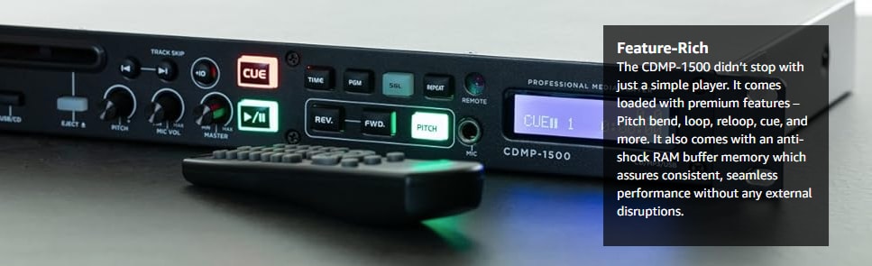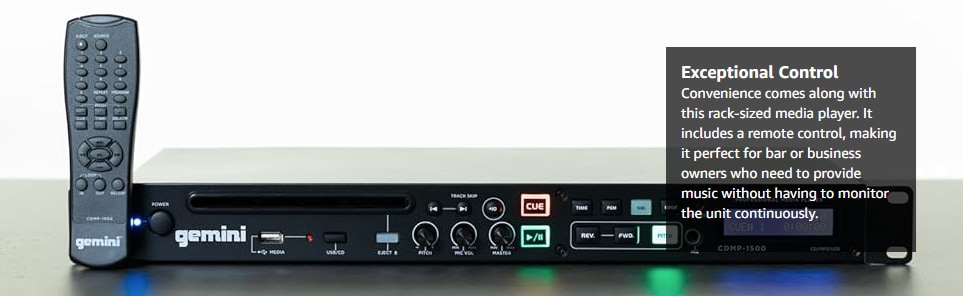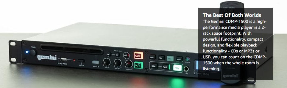 The Gemini CDMP-1500 is a single-rack unit that offers a perfect blend of ease-of-use and powerful playback options. Designed to fit seamlessly into professional racks, it provides smooth CD and USB media playback with a range of features making it an ideal choice for DJs, venues, and installation setups where reliability is essential.