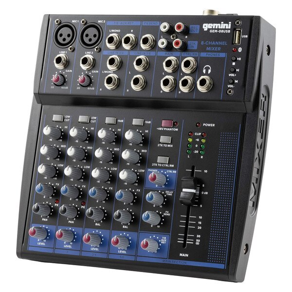 Gemini GEM-08USB Compact 8 Channel Bluetooth Mixer