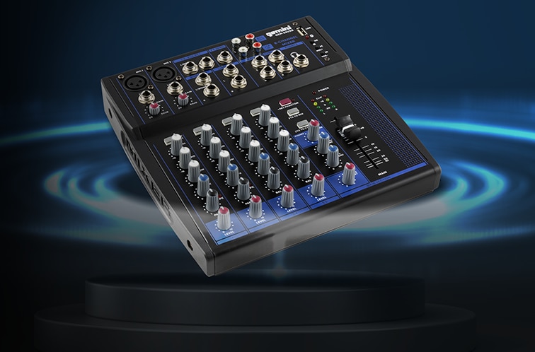 - Channels: 8-Channel Professional Audio Mixer : This 8-channel mixer board is designed for live performances, studio recording, podcasting, DJ setups, and karaoke mixers. Whether you're setting up a PA mixer, sound board mixer, or a professional audio mixer, this compact yet powerful unit delivers high-quality sound processing for various applications.
