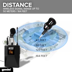 Gemini GMU-HSL100 Professional Wireless Headset and Lavalier Rechargeable Battery Body Pack