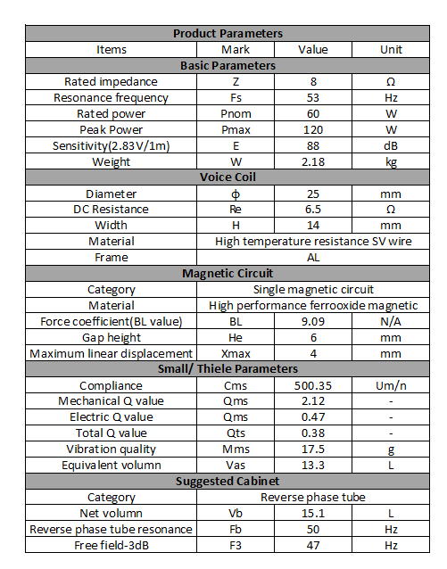 - High-temperature aluminum voice coil supports high-quality bass reproduction