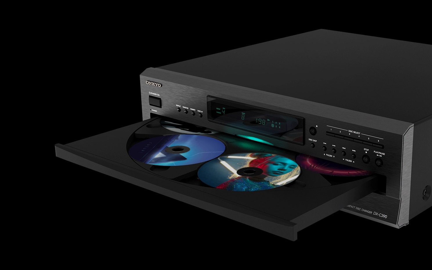 The Onkyo DX‑C390 is a high-fidelity, 6-disc carousel CD changer that blends expert-level sound technology with uninterrupted playback convenience. It delivers smooth, low-noise audio through advanced circuitry and robust digital signal protection for a refined listening experience.