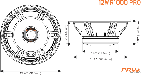 PRV's Pro Series of midrange speakers is ideal for pro audio reinforcement, live sound, high-output home audio systems, and high SPL car audio applications. The 12MR1000 PRO is a 12" midrange loudspeaker engineered for high-output performance in sealed, horn loaded and vented enclosures.