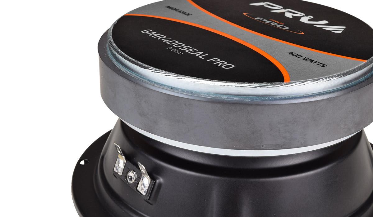 PRV's Pro Series of midrange speakers is ideal for pro audio reinforcement, live sound, high-output home audio systems, and high SPL car audio applications. The 6MR400SEAL PRO is a 6.5" midrange loudspeaker engineered for high-output performance in sealed or compact enclosures.