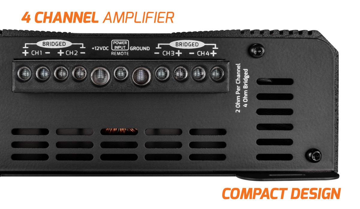 - 4×310 W RMS at 2 Ω for high-output multi-speaker systems