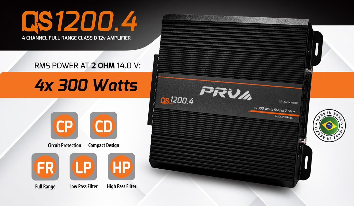 PRV Audio QS1200.4 2 Ohm QS Series 4-Channel Full-Range Amplifier 300W
