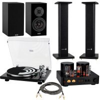 Dayton Audio Turntable Hi-Fi Bundle - TT-1BTB Belt-Drive Turntable + HTA200 Hybrid Tube Amplifier + Opal1 Gloss Black Bookshelf Speakers - Complete Vinyl & Bluetooth Stereo System